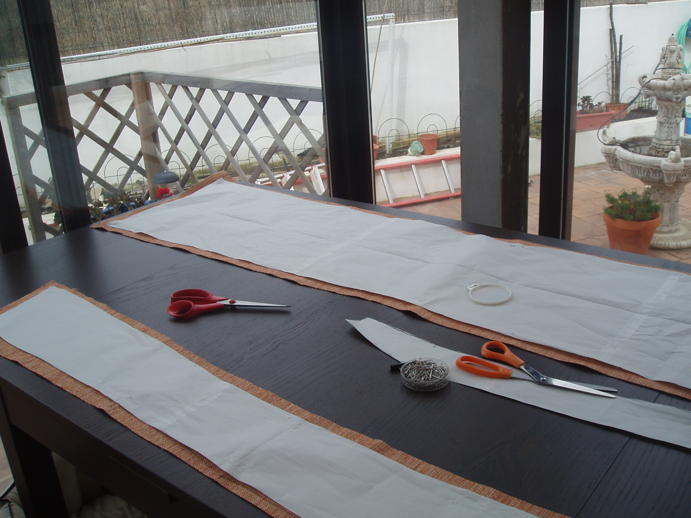When we moved into the house 3 years ago, we bought a lovely dining table in a light oak colour and six matching chairs which were upholstered in a cream cotton type fabric. Obviously over time the colour started to look a little sad. Particularly at the top where the chairs are held and moved around. I tried fabric shampoo on them but it didn´t seem to make much difference. At a fabric shop near Malaga, on a sneaky trip to Ikea (to buy napkins and candles, what else?!) I saw some lovely fabric in a burnt orange colour at a bargain price. I had already measured the chairs and knew I needed just over six metres, so asked for seven (allowing for any mistakes). There was eight and a half metres of fabric left on the roll, so the shop very kindly discounted the last metre and a half and I went home a happy woman.