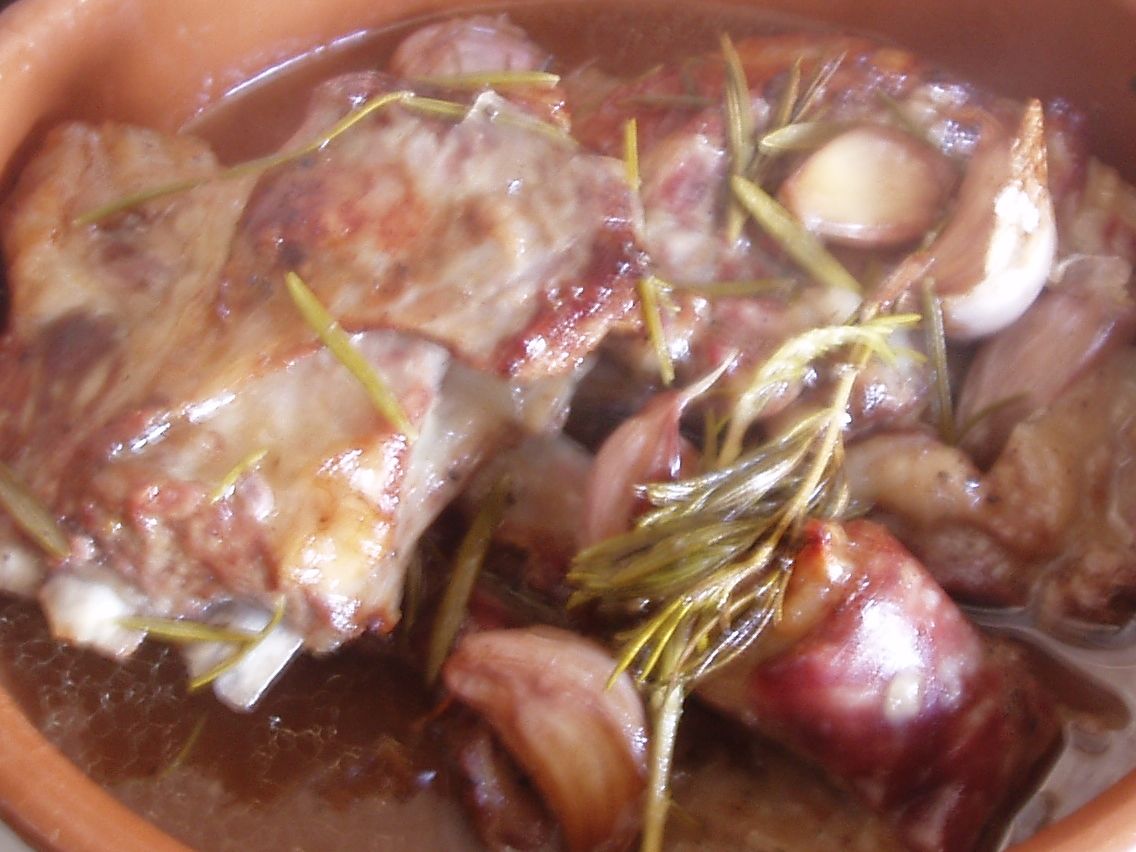 Anyway, one of the cuts of meat you get is neck of kid -and I know that in the UK at least, you can buy neck of lamb. It used to be one of those cheap cuts, but has now become trendy. It´s cooked in the oven simply and then depending on the weather I serve with salad or vegetables and plenty of crusty bread to mop up the juices. It´s best picked up and eaten with your fingers!