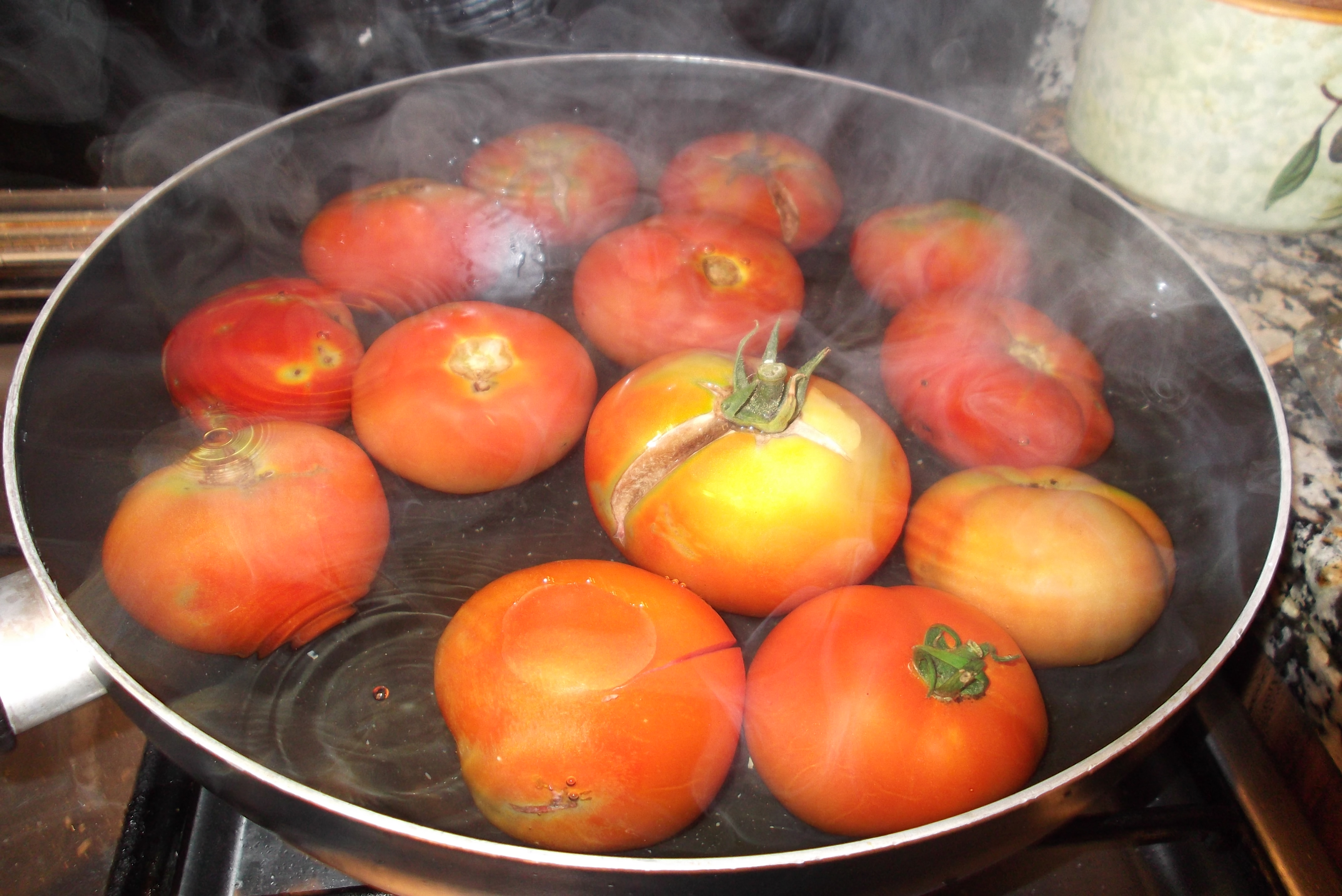 When I am going to bottle or can them, I add half a teaspoon of salt per litre of tomato and heat gently until just bubbling.