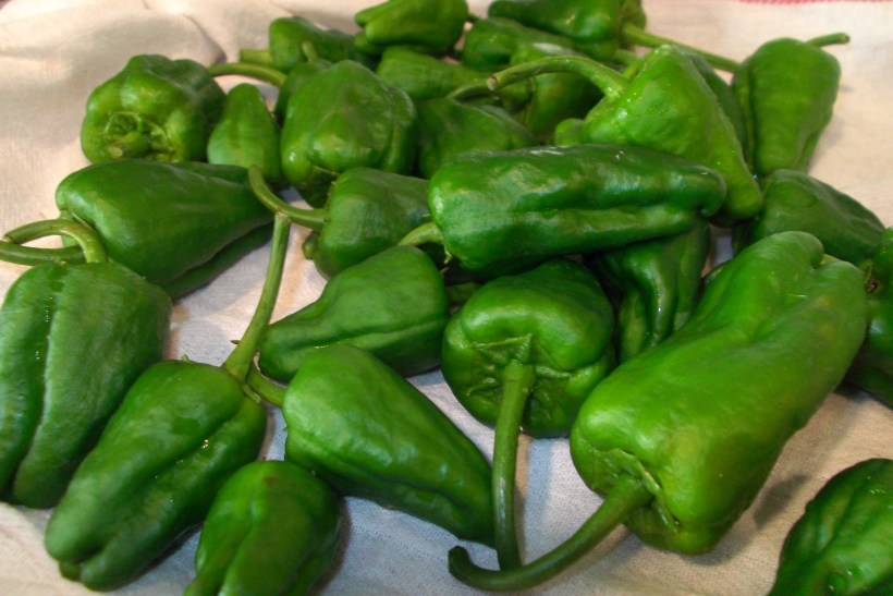 Pimientos de Padrón are a popular tapas, especially when they´re in season during the summer. They are little green peppers that come from a town in Galicia (northern Spain) called Padrón. So, their name translated means “peppers from Padrón”. A little saying about them is that “algunos pican, otros no” which means “some are hot, some are not”. To be honest, as a dedicated chili eater, they´re mostly not that spicy…apart from some we grew last year which seemed to want to be like all the other chilis in the vegetable garden and nearly blew my head off!