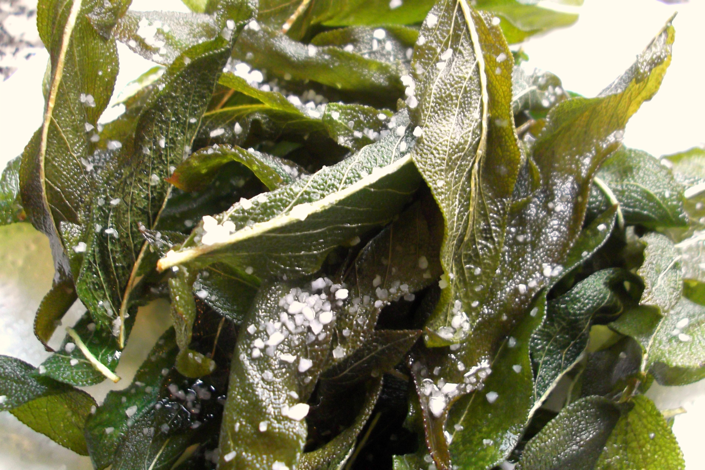 And whilst you´ve got that oil hot, how about quickly deep frying some sage leaves and sprinkling them with salt too.