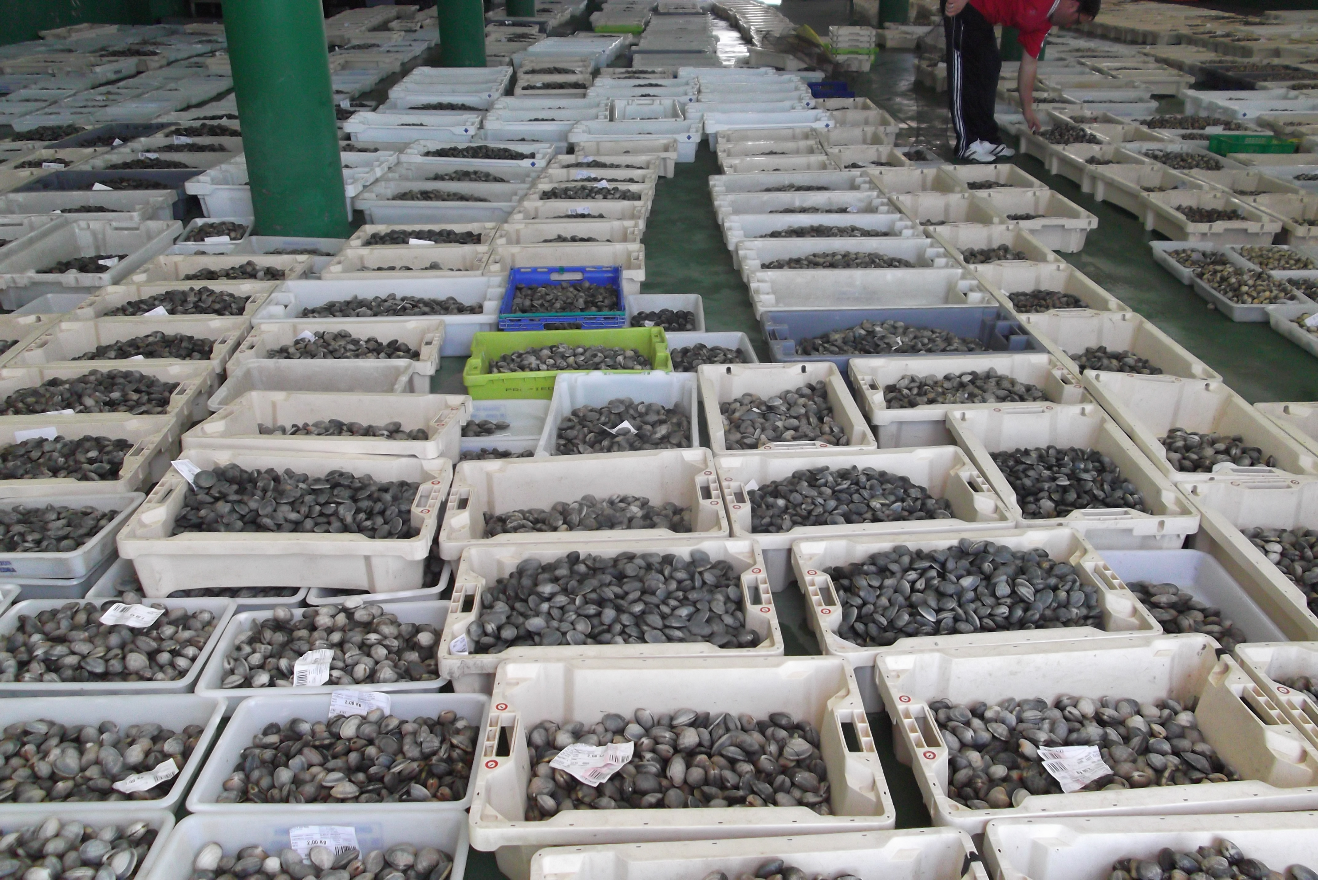 It´s famous for its clams, and we peeked into the storage area to see the boxes and boxes of clams waiting to be sent off to restaurants, shops and all over Spain.