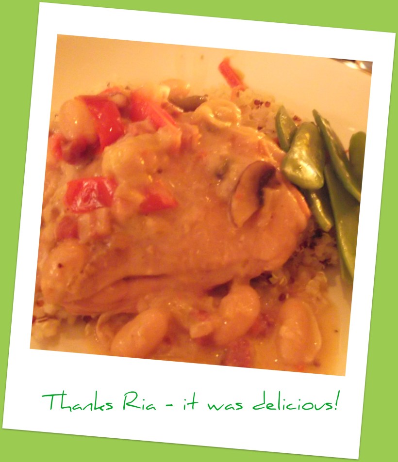 Best friend Ria made a fantastic chicken and cannellini bean casserole (recipe another day) even though she was feeling poorly last week.