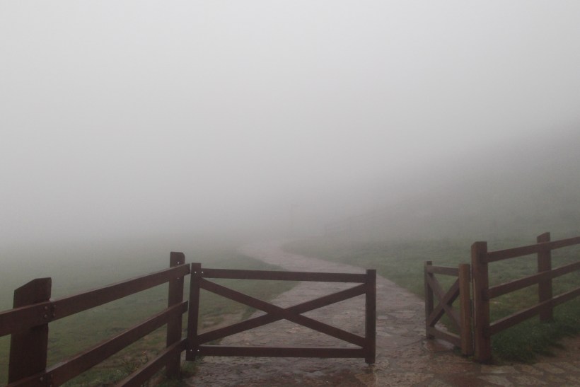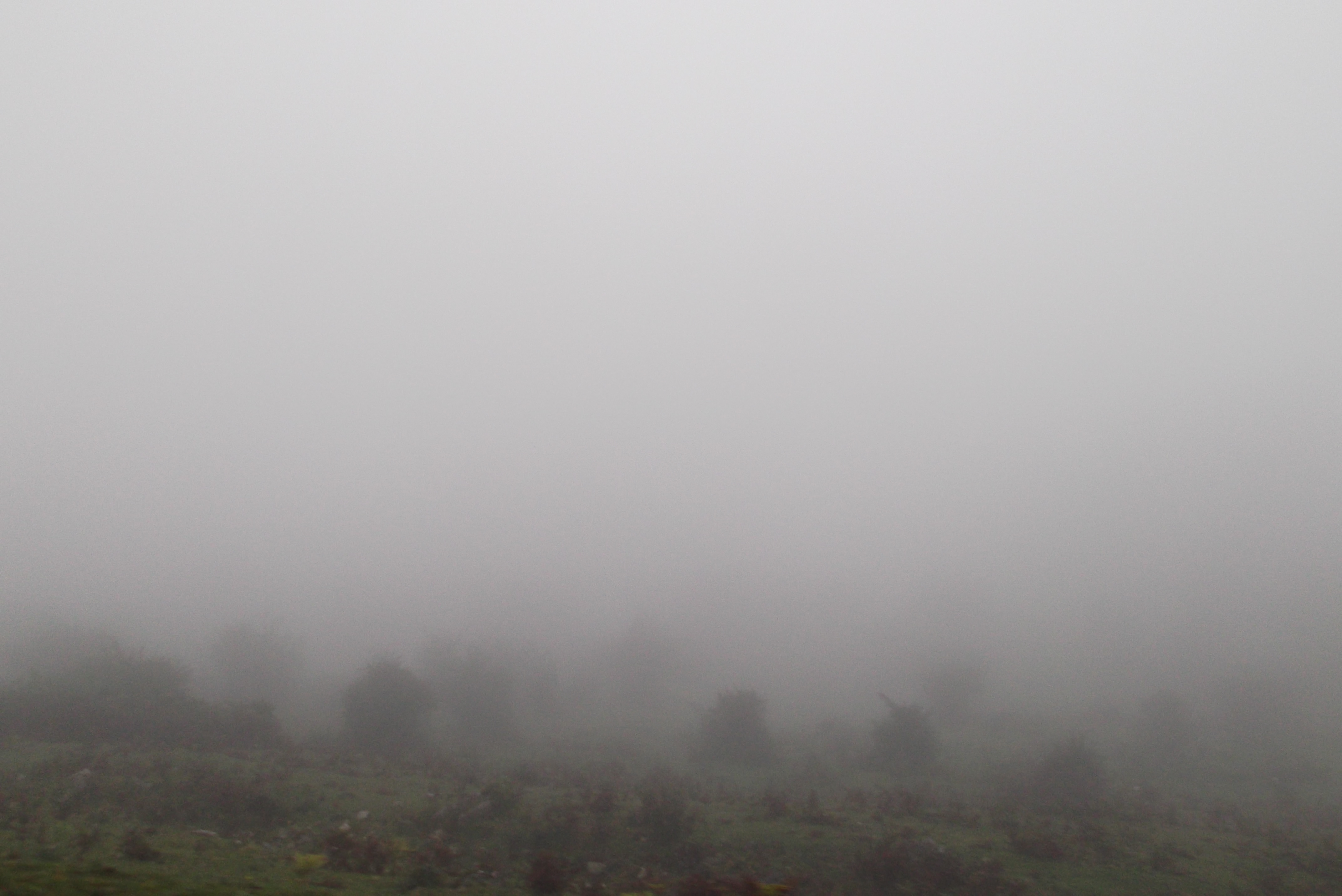 We started the long, slow, drive up the twisting road to the lakes, and the fog came down.