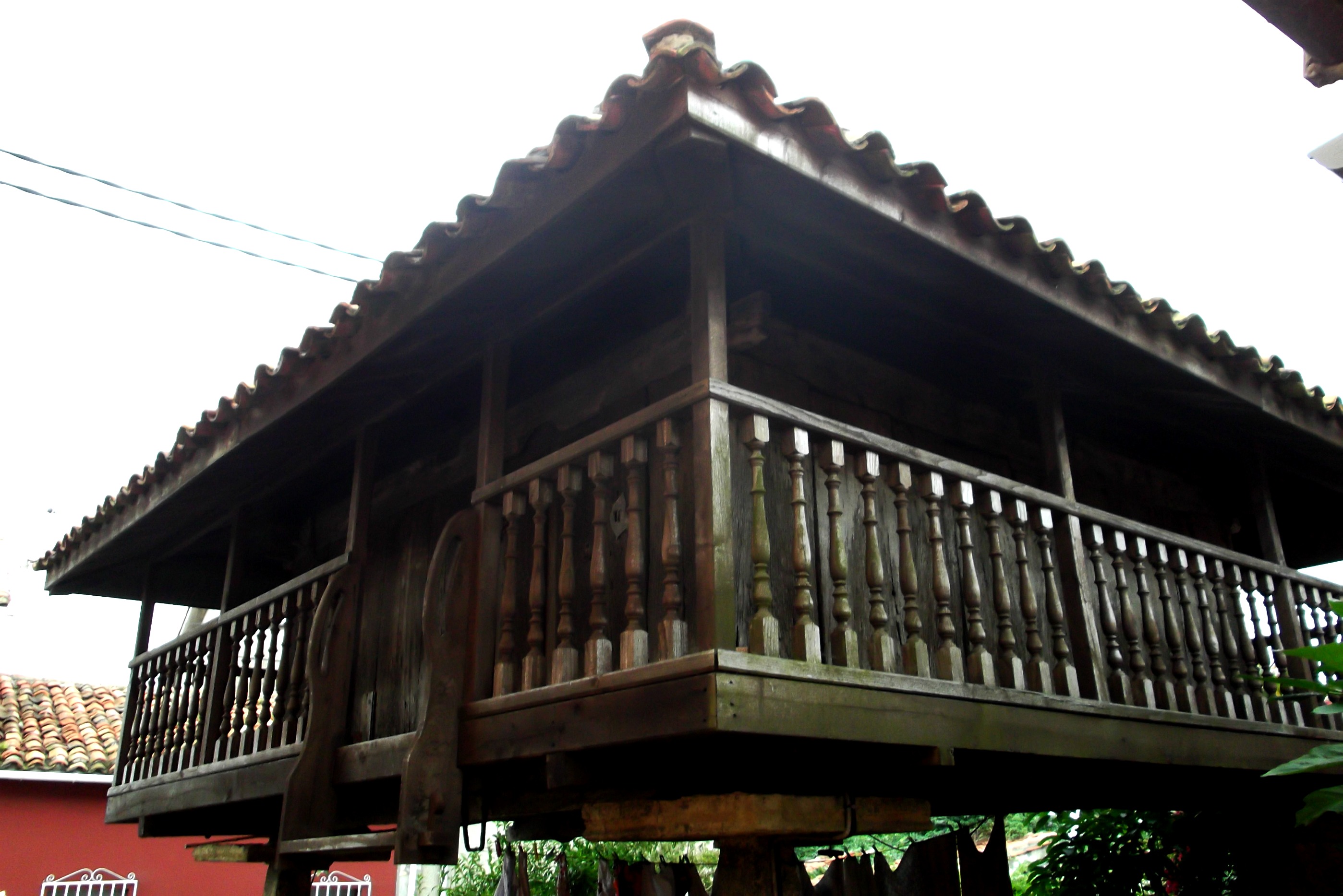 One of the family has an Hórreo in their garden – these are ancient storage areas (now preserved and highly valued) made of stone or wood and on raised legs. Couldn´t resist taking some snaps, even though the lady of the house was embarrassed about her washing hanging up to dry underneath!