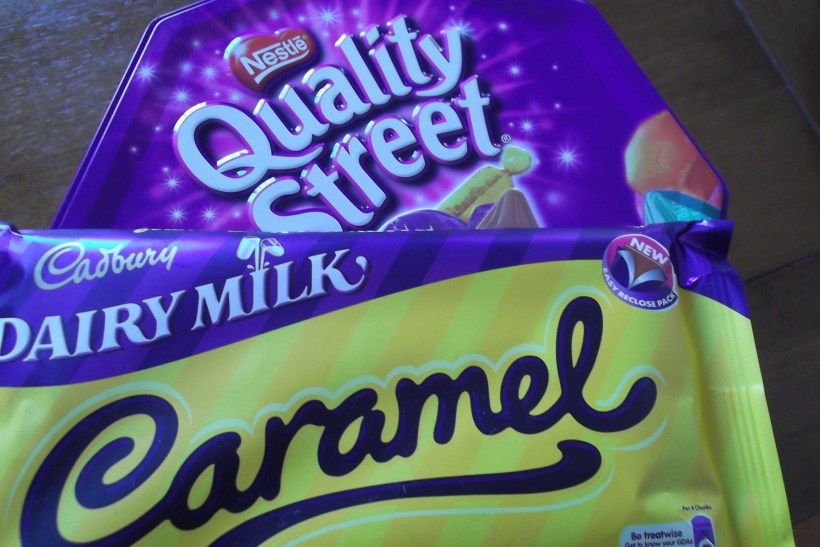 Chocolate. And then some more chocolate. If you haven´t tried Quality Street, track it down! Lots of lovely chocolate toffee and caramel sweets in a tin. They just take me back to childhood Christmases when these were a very special treat. And then you get to use the tin to put your cakes in!