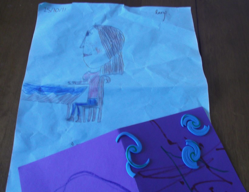 I carefully packed some lovely pictures done by the wonderful children I got to spend time with. A very flattering portrait of me done by my 10 year old niece, Lara. Look at that fabulous waist and bust…if only! A lovely thank you card from 4 year old William and his 2 year old brother Matthew.