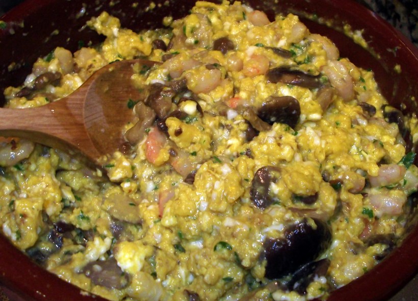 As this is boiling you can process the skin – either by hand into fine shreds, or in a food processor into tiny chunks.