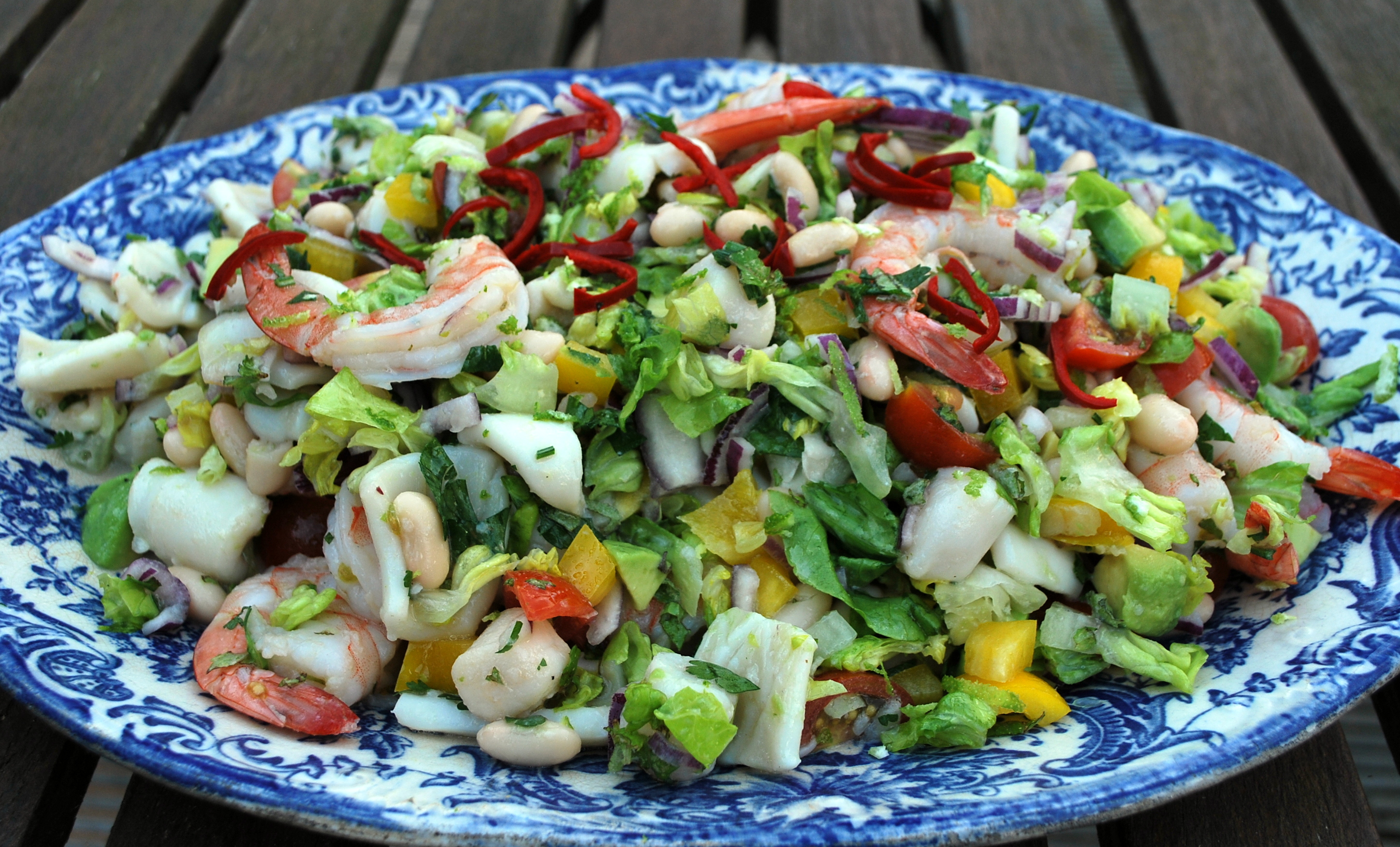 looks good once, but I have not ever eat a salad like that, whether cooked or raw seafoodnya?