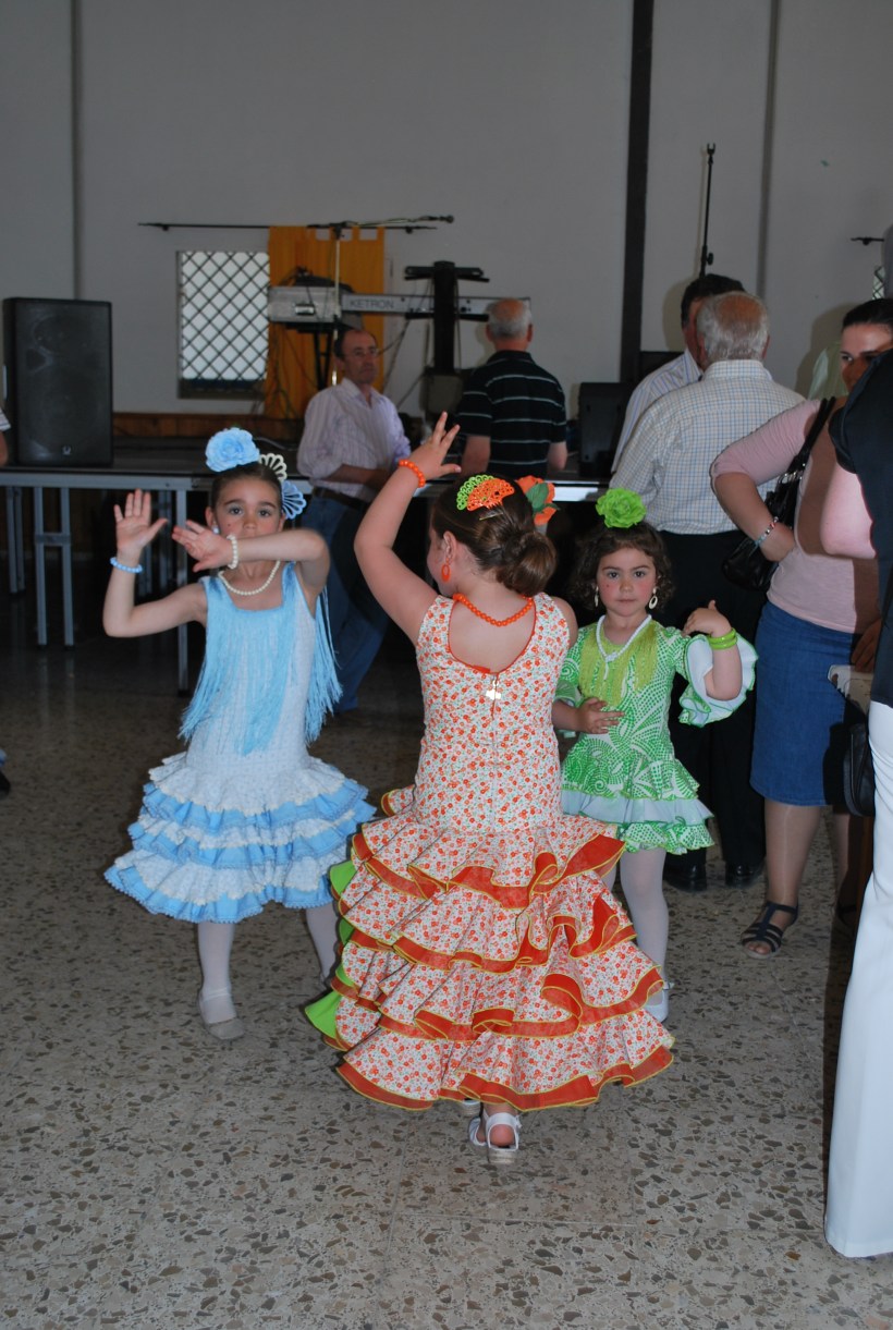 Anyway, there we were on our way to the Fiesta.  Everyone was scrubbed up and wearing their glad rags and Paco insisted on parking practically on the main stage, so that we would be close to where the action was going to take place.  The restaurant was crowded but Dolores soon started shifting tables and chairs and we ordered some wine while we awaited the arrival of Henny and Marco.  Ria and I caused a little consternation by asking for wine and  a bottle of water – not tinto de verano which is red wine and lemonade.  Drinking red wine alone is considered kind of “fast” around here, but apparently also having a glass of water with the wine was a sure fire way of causing terrible stomach ache.  We decided to run the risk despite Dolores’ warnings.