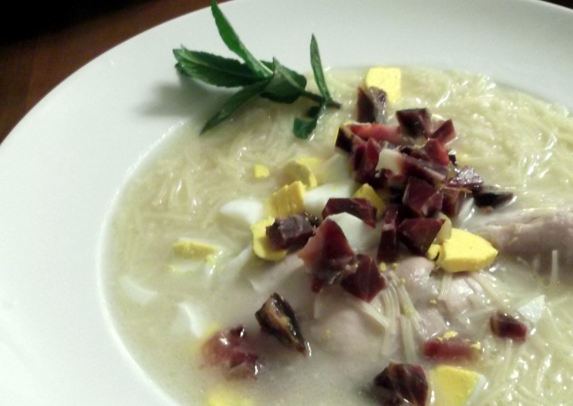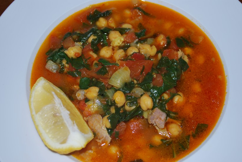 Ms Roden tells us “Melokhia is one of Egypt’s National dishes, an ancient peasant soup”. As I like to embrace my inner ancient peasant, I knew this was for me. Fear not if you can’t get hold of it, use spinach or some delicate green leafed vegetable. I was thinking of something old, something new as this is essentially a chicken or vegetable soup recipe with the added new ingredient. Sorry the photos don’t look that exciting, it’s not a looker, but it really wins points on flavour.