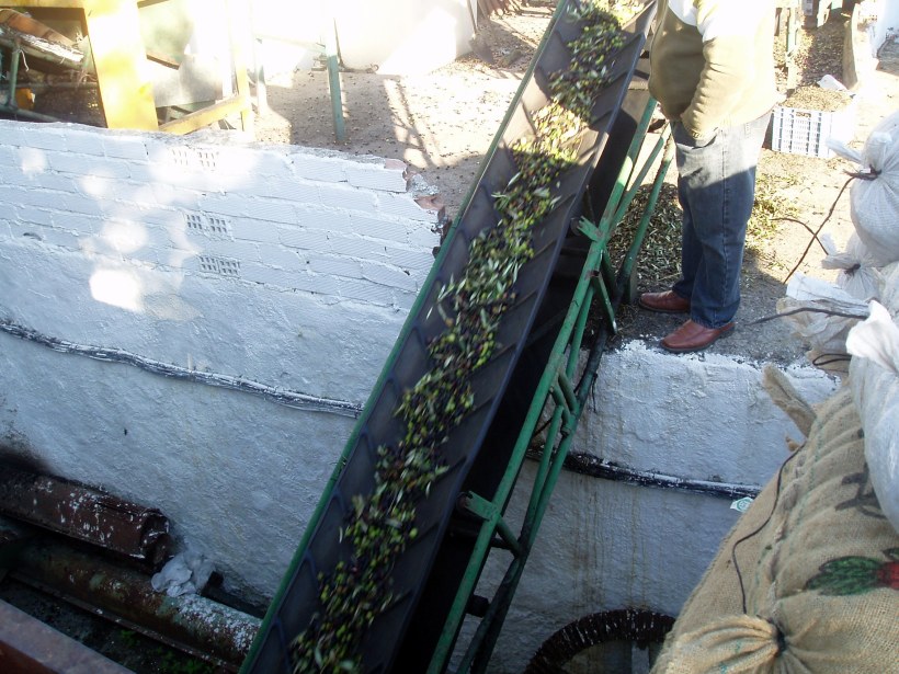 But, nil desperandum. A neighbour’s son and his wife decided 2 years ago to set up a little mill just a few km from us next to our local village. It’s up a very inconvenient wiggly track but the views are amazing! They mostly bought second hand machinery, which I like the thought of, and the very effective little mill serves the locals like us for a few months a year when we want to mill our own olives and enjoy our own oil.