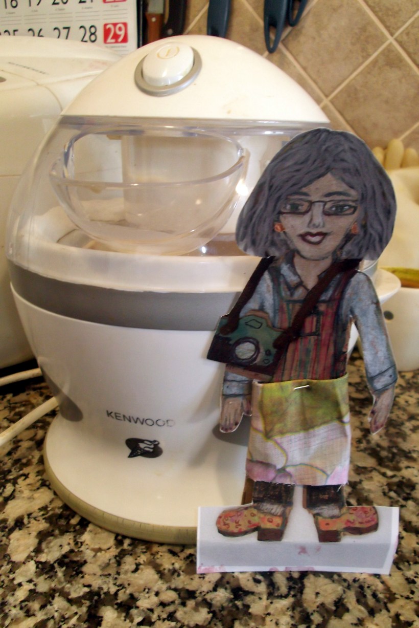 After a little churning and a couple of hours in the freezer it was time to taste the ice cream. She took her pinny off to eat and her verdict was….mmmm, we´ll definitely make this again!