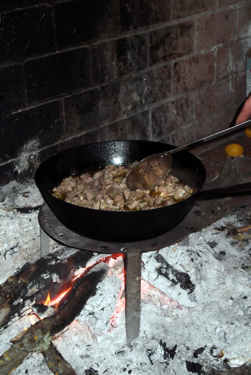 Starters were typical. Plates of jamón and cheese, lettuce with anchovies, croquetas and prawns to peel and dip in alioli.