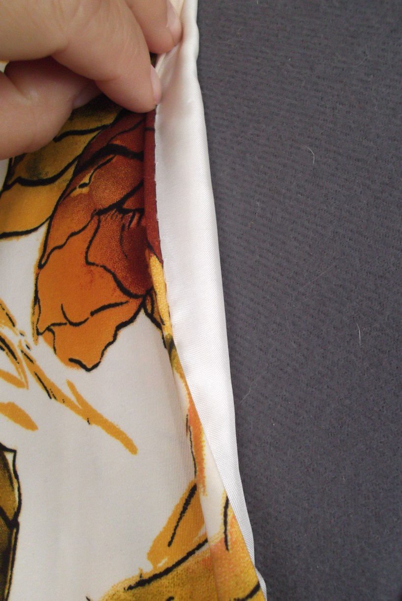 I did a few twirls to show off the five, yes five, metres each of skirt and lining which I finished the same way at the Going to the Wedding Dress 1.